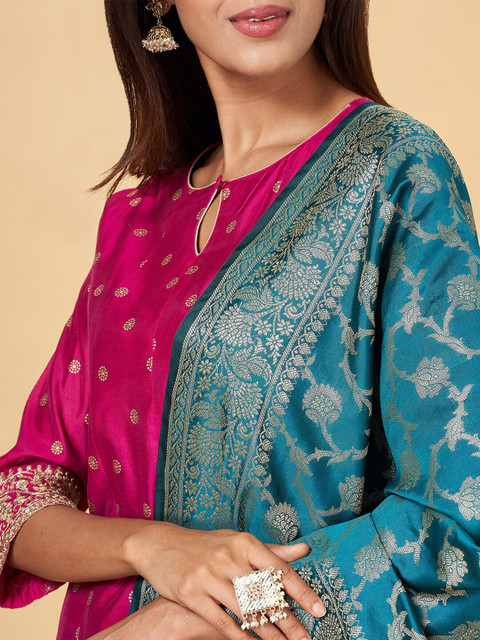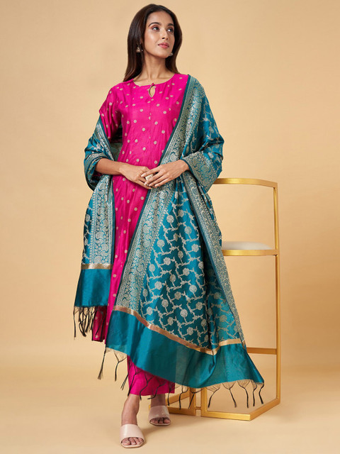 RANGMANCH BY PANTALOONS Floral Woven Design Dupatta With Zari