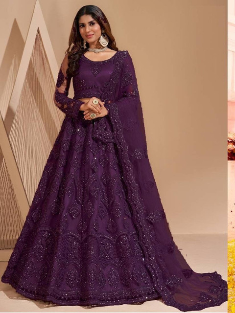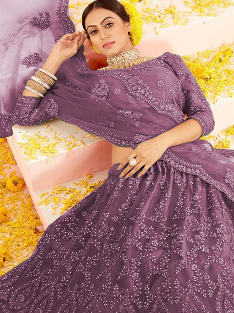 Purple embellished lehenga choli with dupatta, sequinned