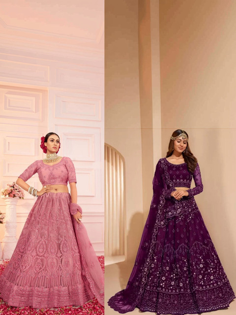 Purple embellished lehenga choli with dupatta, sequinned