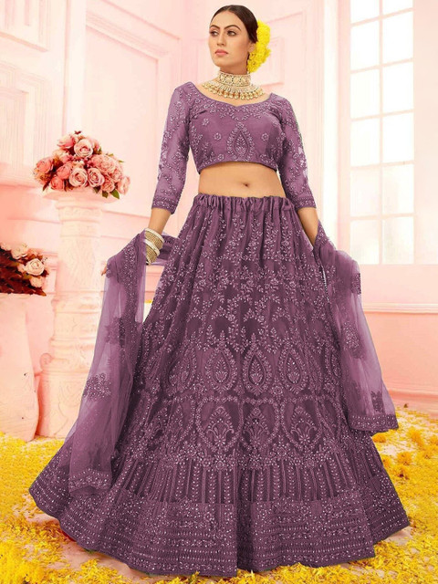 Purple embellished lehenga choli with dupatta, sequinned