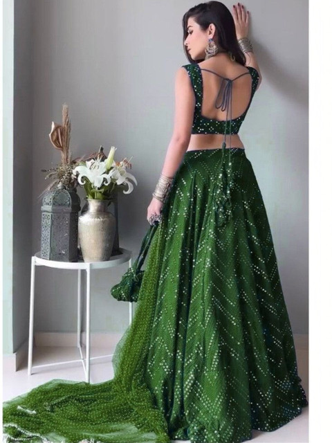 Green embellished lehenga choli with dupatta, sequinned