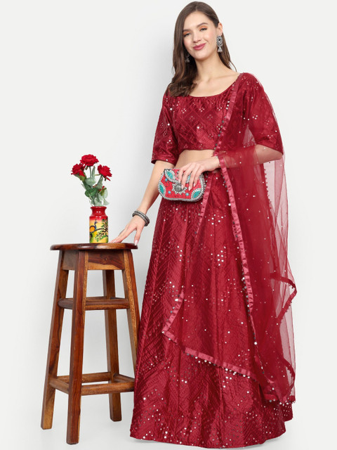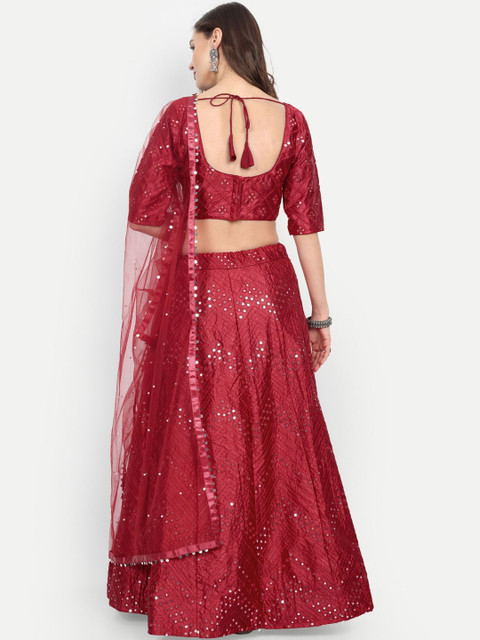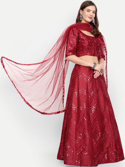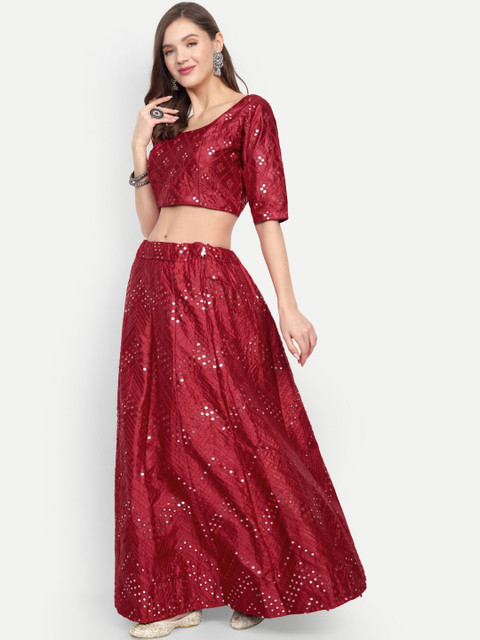 Maroon embellished lehenga choli with dupatta, sequinned