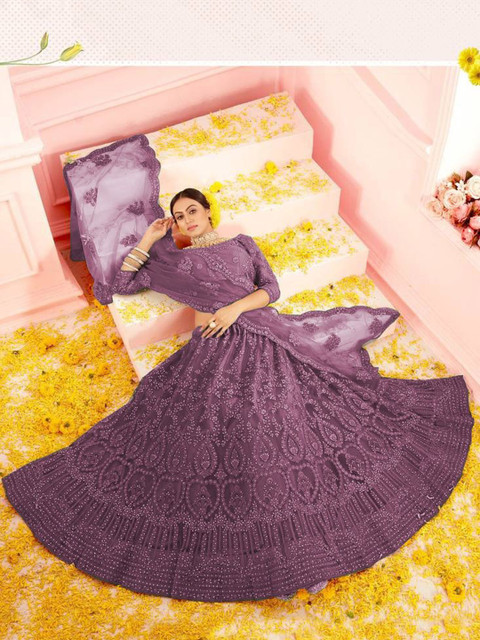 Purple embellished lehenga choli with dupatta, sequinned
