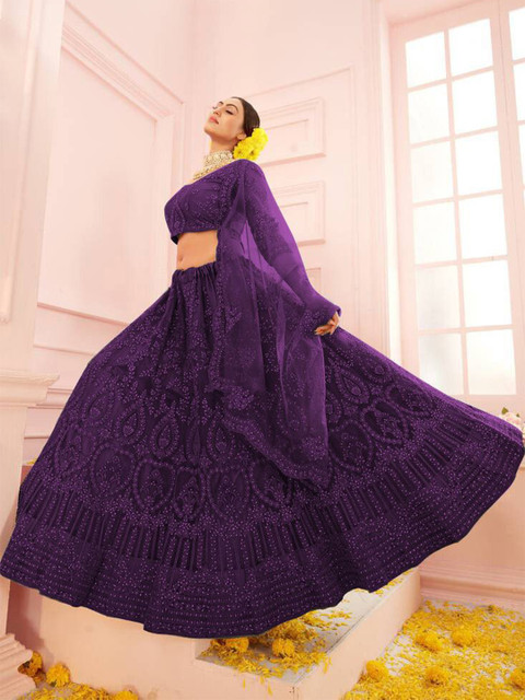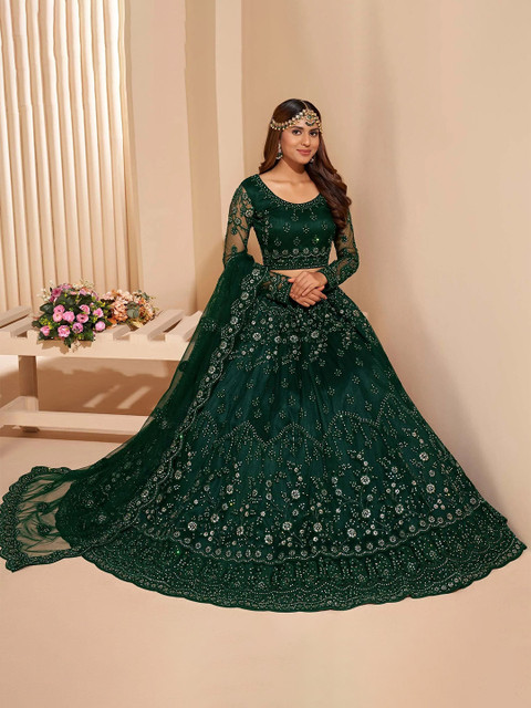 Multicoloured embellished lehenga choli with dupatta, sequinned