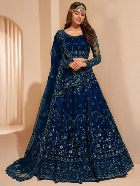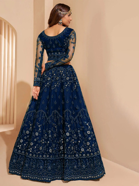 Navy blue embellished lehenga choli with dupatta, sequinned