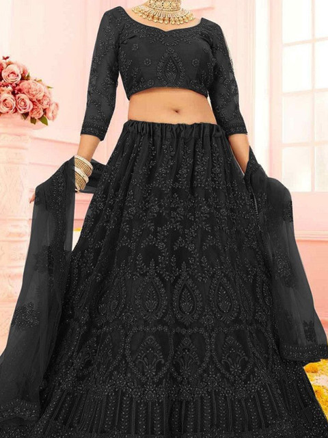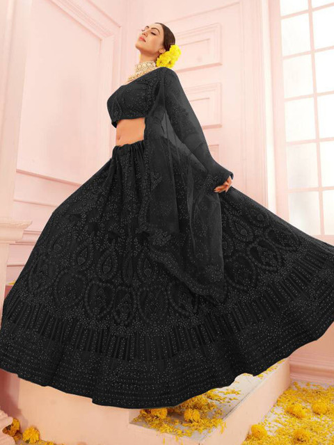 Navy blue embellished semi-stitched lehenga, flared hem