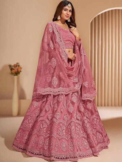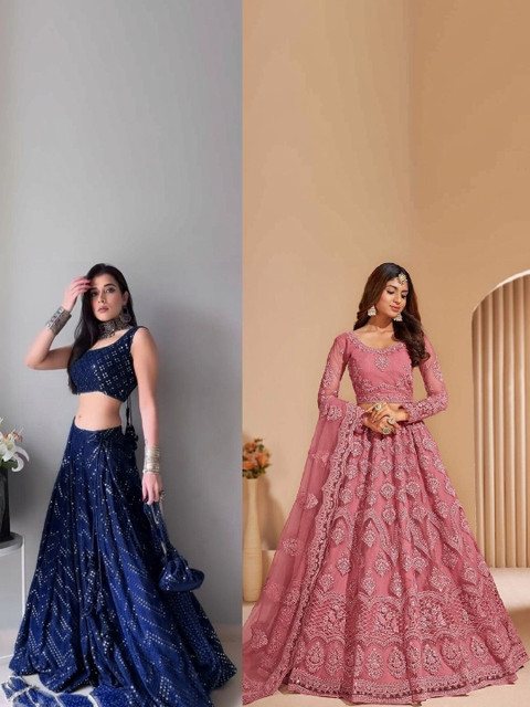 Blue embellished lehenga choli with dupatta, sequinned