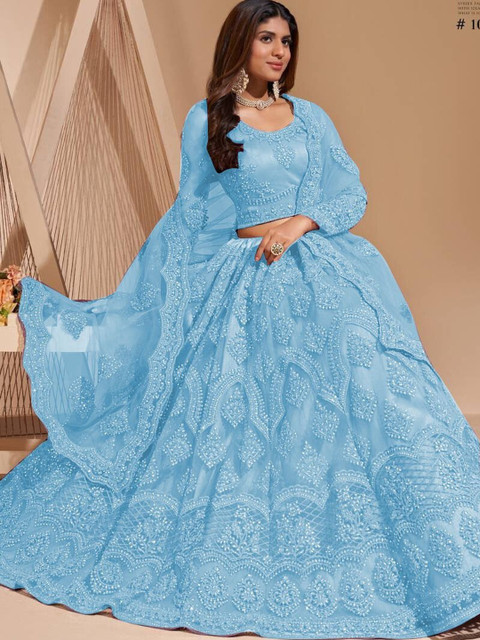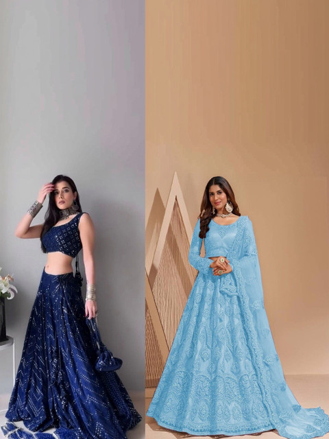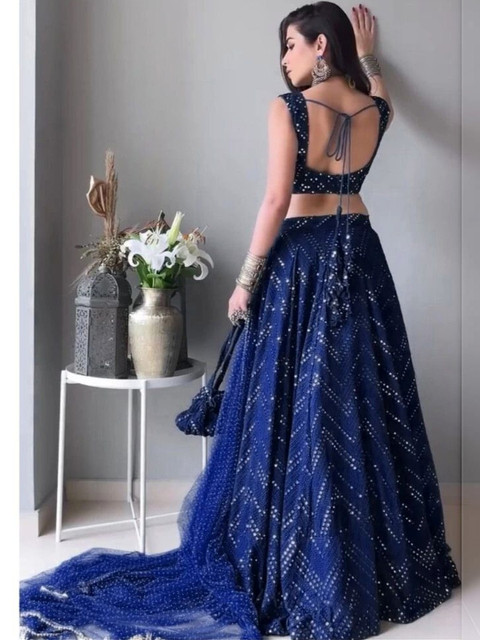 Navy blue embellished lehenga choli with dupatta, sequinned