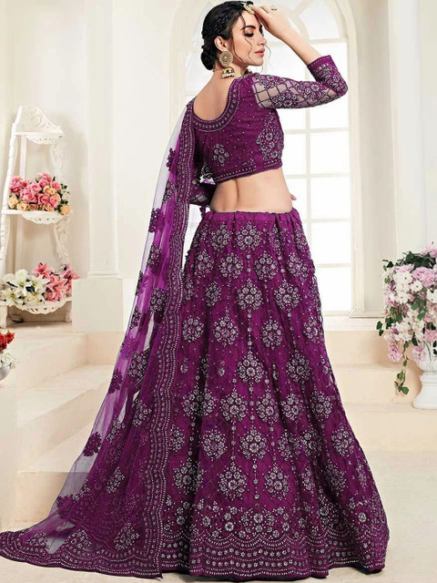 Red embellished unstitched blouse, has a round neck, long sleeves, zip closure