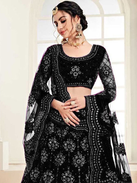 Fuchsia embellished semi-stitched lehenga, flared hem