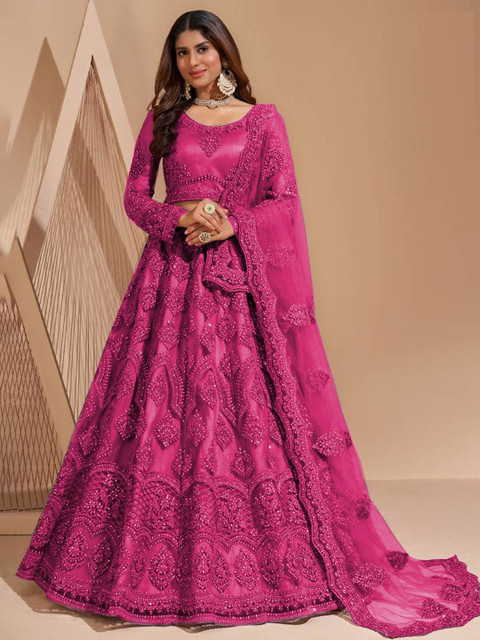 Fuchsia embellished lehenga choli with dupatta, sequinned