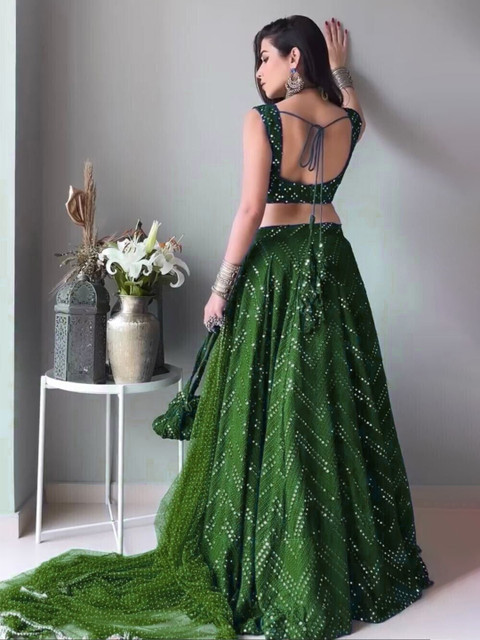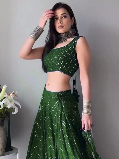 Green embellished lehenga choli with dupatta, sequinned