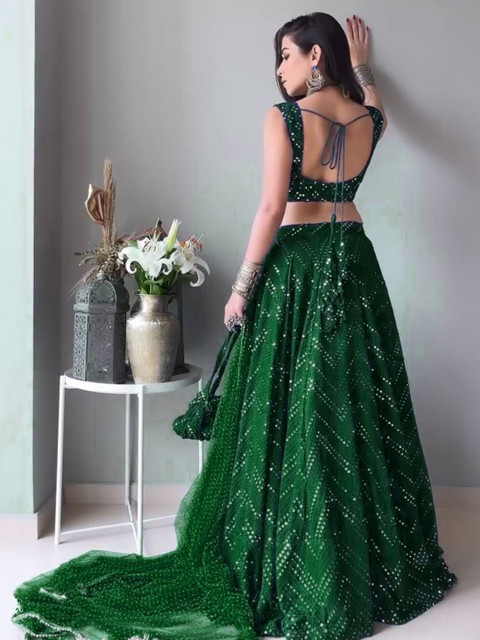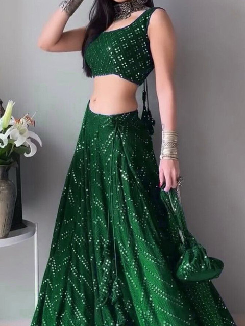 Green embellished lehenga choli with dupatta, sequinned