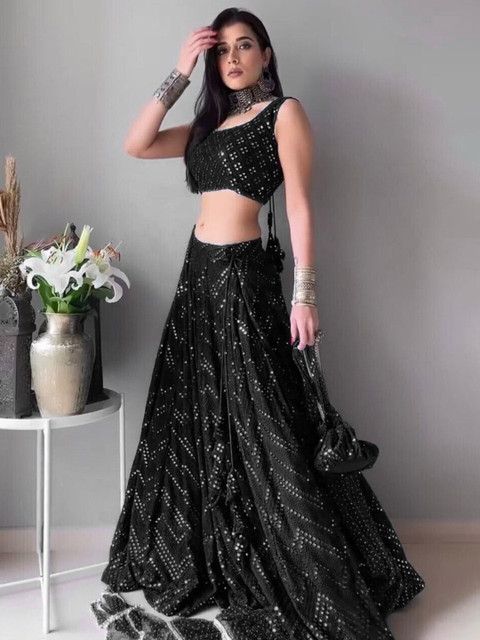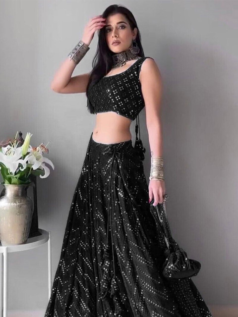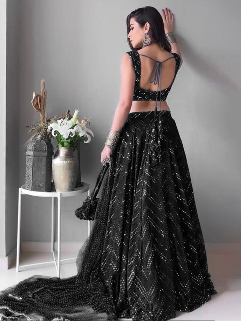 Black embellished unstitched blouse, has a round neck, sleeveless, zip closure