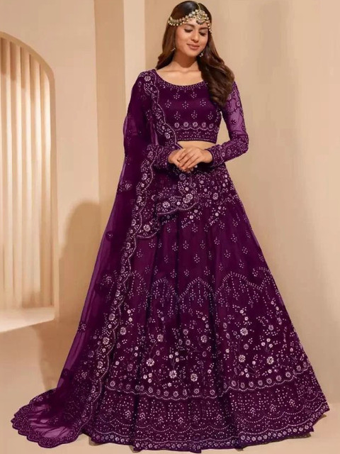 Purple embellished lehenga choli with dupatta, sequinned