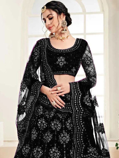 Maroon embellished lehenga choli with dupatta, sequinned