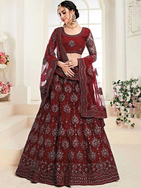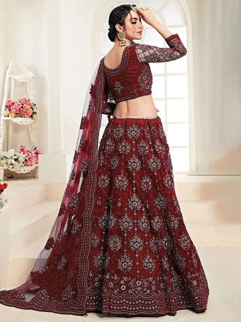 Maroon embellished semi-stitched lehenga, flared hem