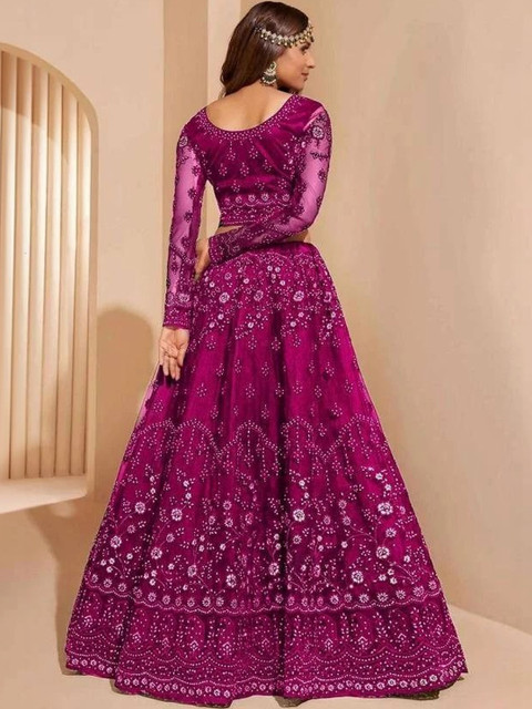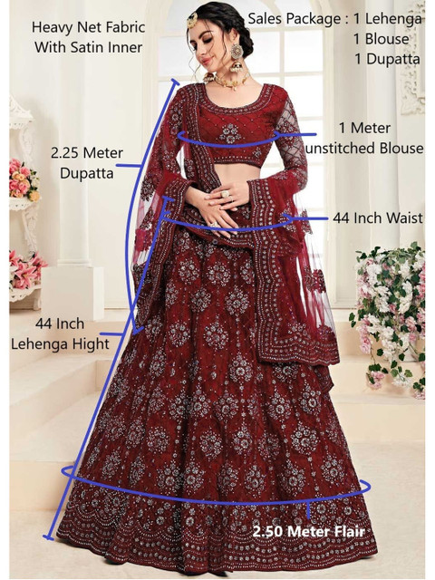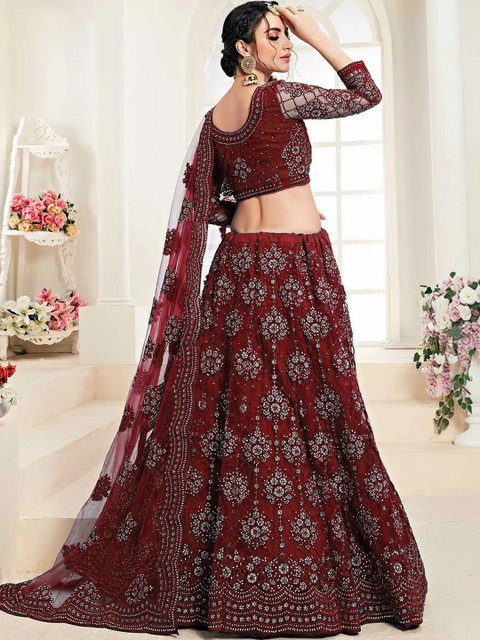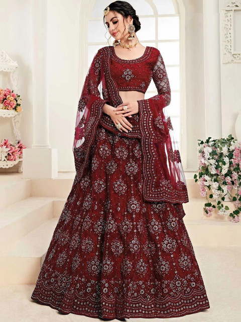 Maroon embellished semi-stitched lehenga, flared hem