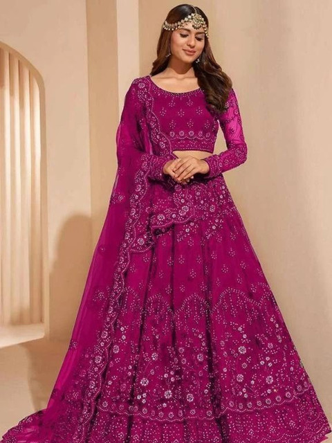 Maroon embellished lehenga choli with dupatta, sequinned