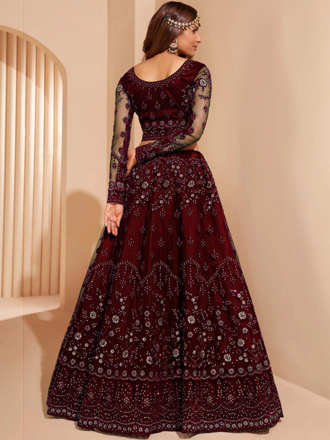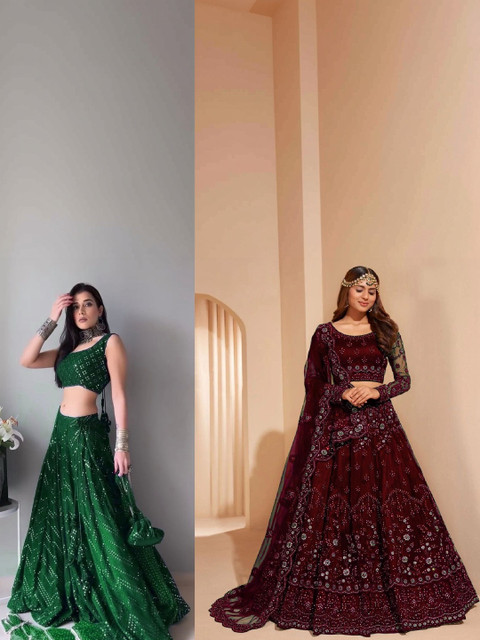 Green embellished semi-stitched lehenga, flared hem