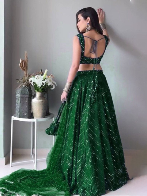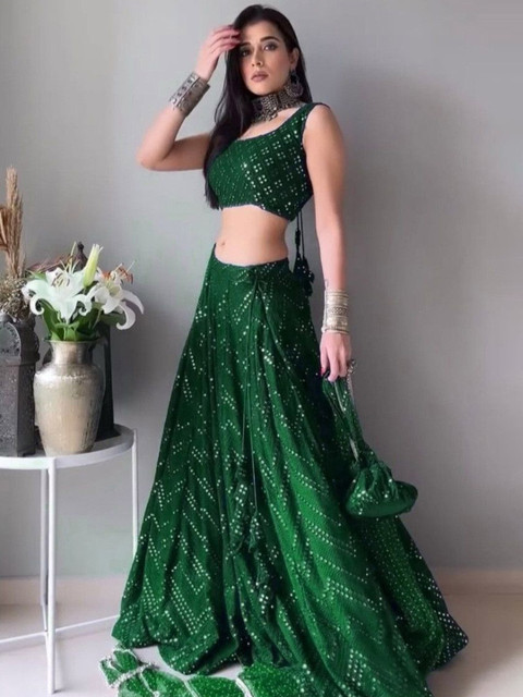 Green embellished lehenga choli with dupatta, sequinned