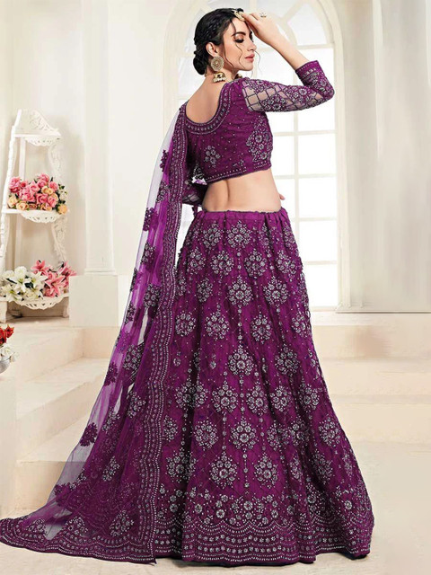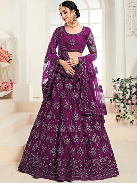 Multicoloured and embellished semi-stitched lehenga, flared hem