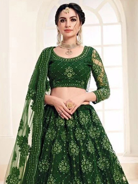 Multicoloured embellished lehenga choli with dupatta, sequinned