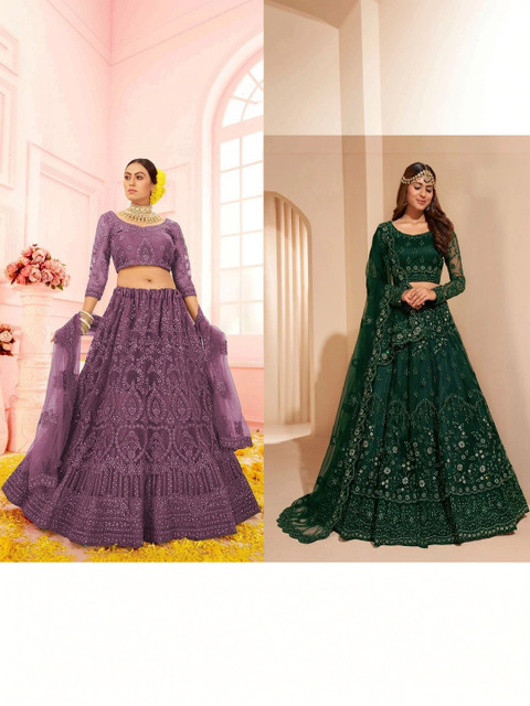 Purple embroidered semi-stitched blouse, has a round neck, three-quarter sleeves, zip closure