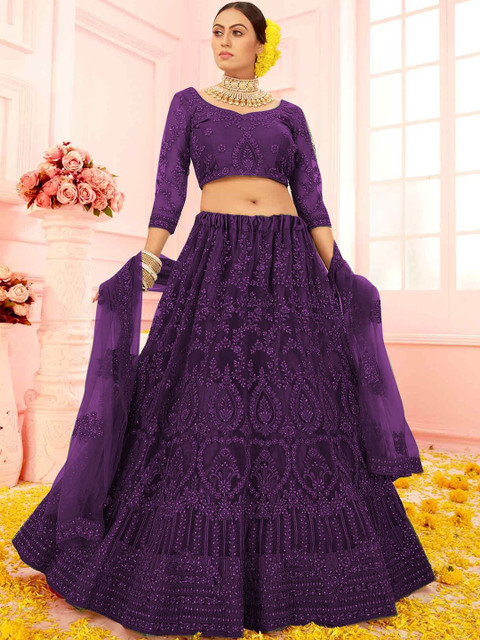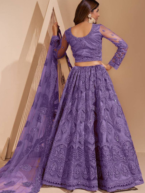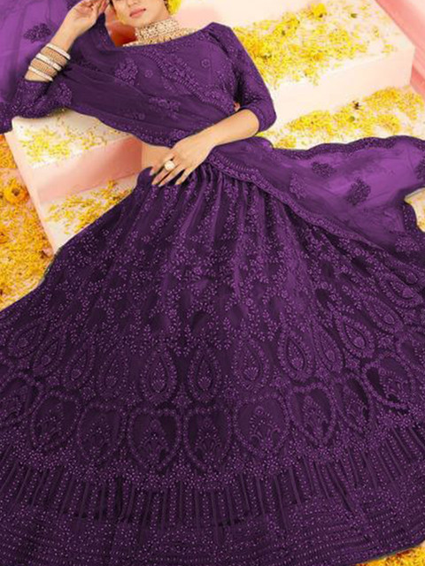 Purple embroidered unstitched blouse, has a round neck, long sleeves, zip closure
