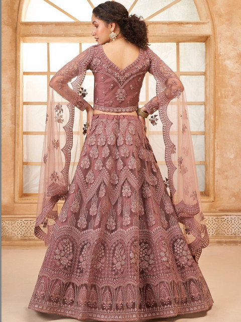 Rose embroidered lehenga choli with dupatta, thread work