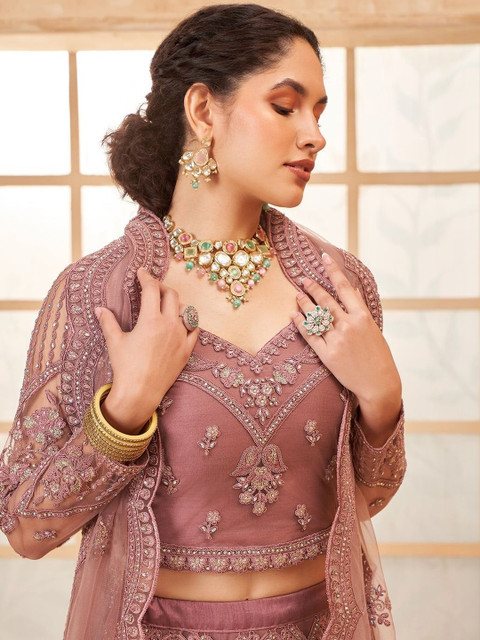 REELOVE FACTORY Embroidered Thread Work Semi-Stitched Lehenga & Blouse With Dupatta