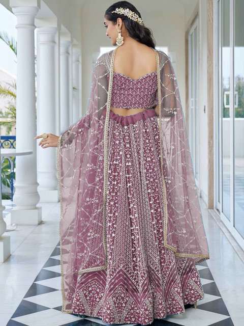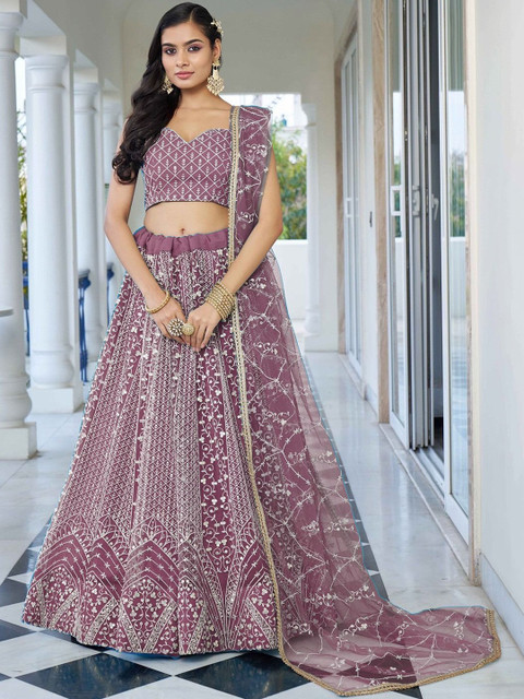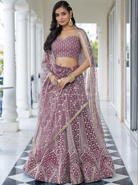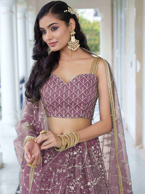 Purple embroidered lehenga choli with dupatta, thread work
