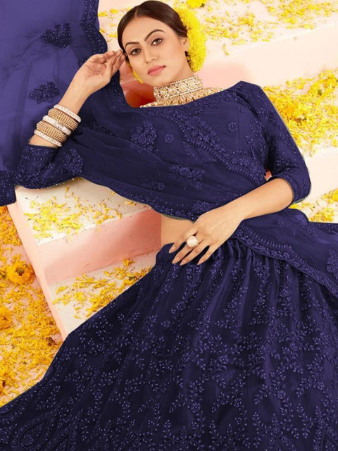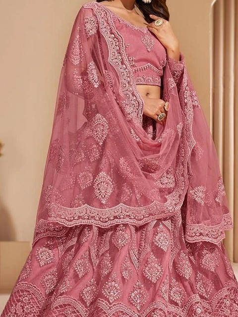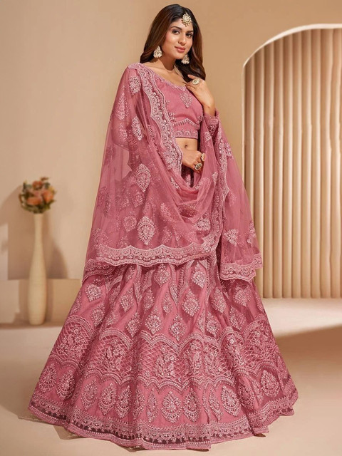 Multicoloured embroidered lehenga choli with dupatta, thread work