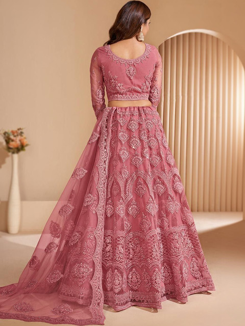 Rose embroidered unstitched blouse, has a round neck, long sleeves, zip closure