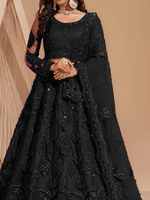 Black embellished unstitched blouse, has a round neck, long sleeves, zip closure