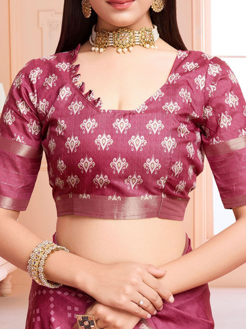The saree comes with an unstitched blouse piece