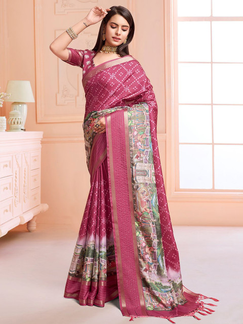 - Pink and green saree