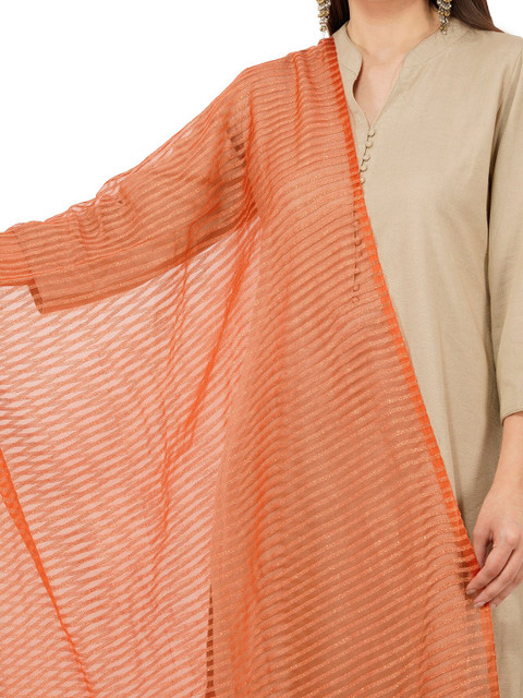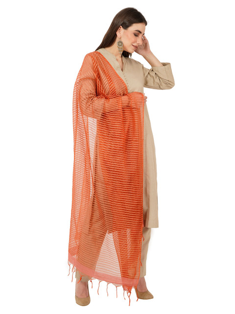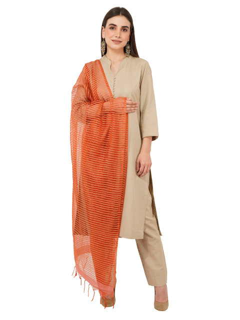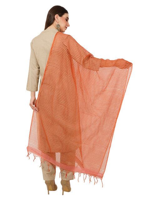 Rust solid striped dupatta, tasselled border
