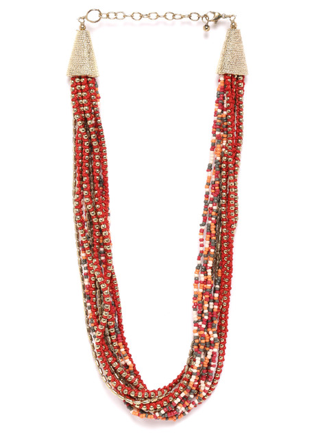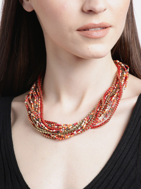Red & orange gold-plated beaded layered necklace
