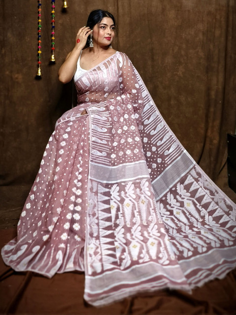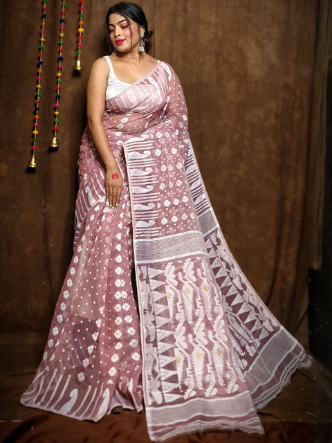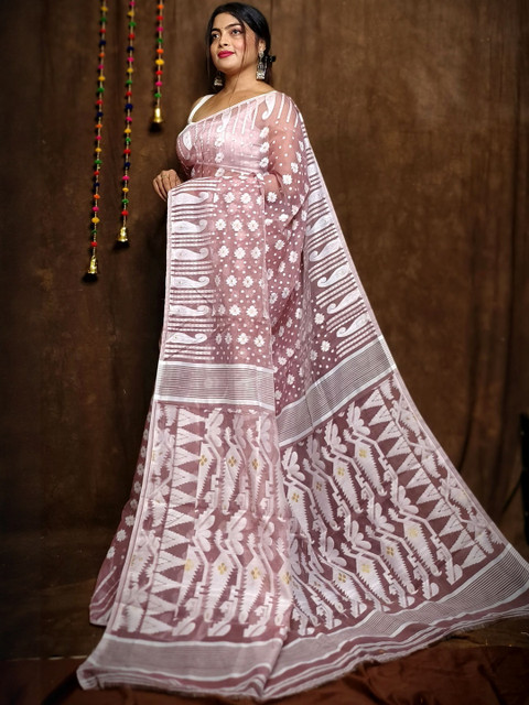 RIDDHIMAN FASHION Ethnic Motifs Woven Design Pure Cotton Jamdani Saree