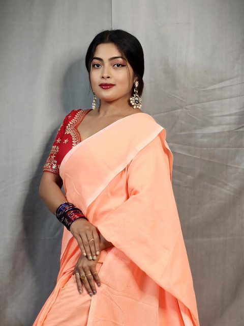 The blouse worn by the model might be for modelling purpose only. Check the image of the blouse piece to understand how the actual blouse piece looks like.