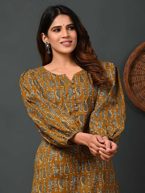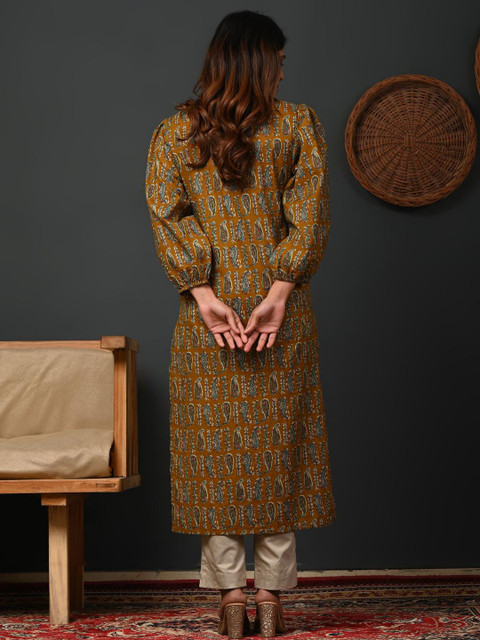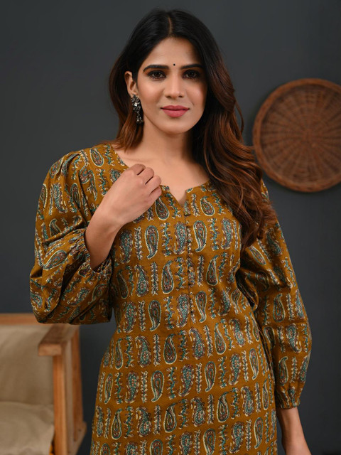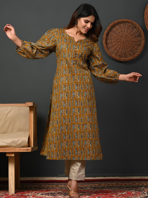The kurta is made of soft pure cotton, very comfortable and skin-friendly. The print and color are beautiful and look even better in real life. Stitching is neat and fitting is good, though slightly loose — perfect for casual or office wear. Great value for money!
