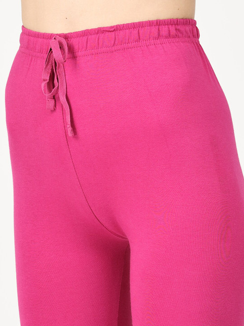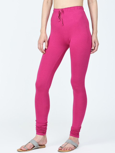 Pink solid churidar-length leggings, has an elasticated waistband and drawstring closure