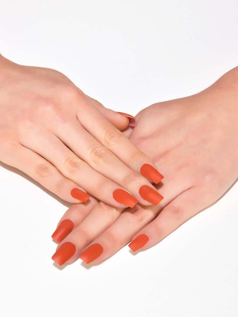 The shade is pretty good. It is a burnt orange matte shade. The composition is quite thick but it gets chipped very easily.
