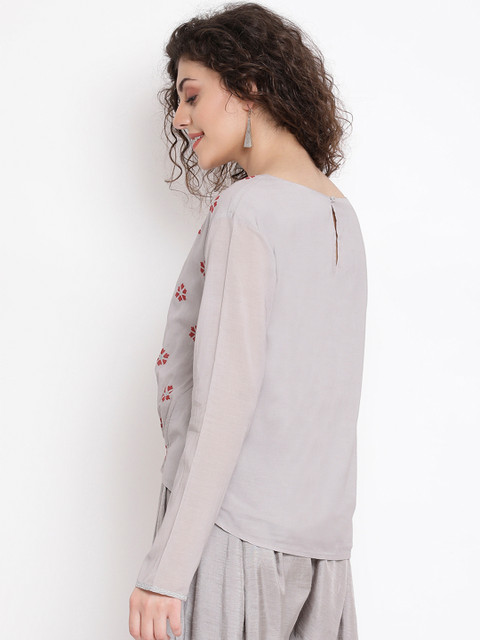 Polish your look with this trendy top from ROOTED. This grey piece can be styled with slick black jeans and canvas shoes when you’re going to a casual dinner with the girls.