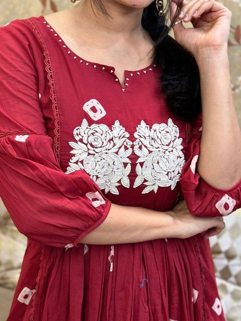 Maroon and white embroidered Kurta with Trousers