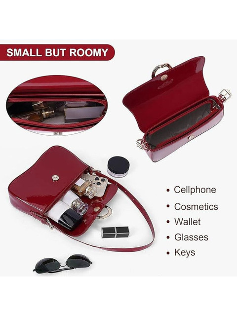 Maroon solid sling bag, with buckle detail detail