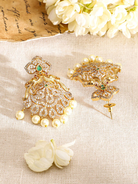 22KT Gold-plated short necklace, has white CZ-studded and pearl-beaded details