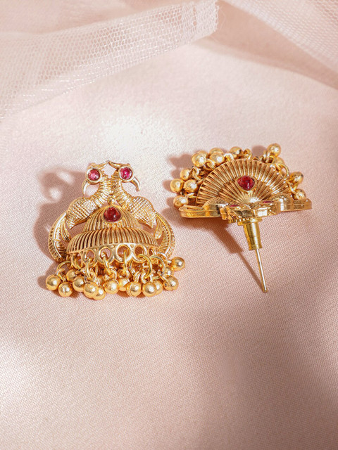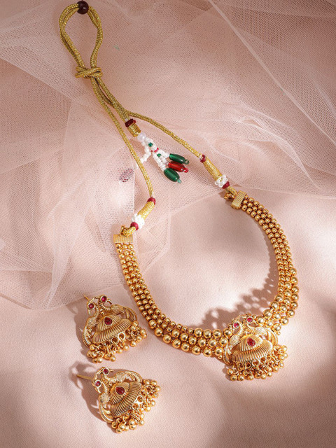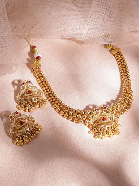 22k Gold-plated necklace, has red Artificial stone-studded details