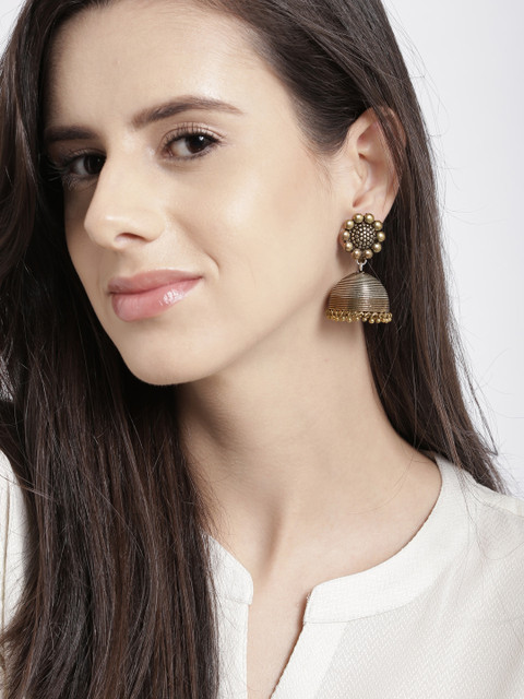 Oxidised silver and antique gold-toned dome-shaped jhumkas